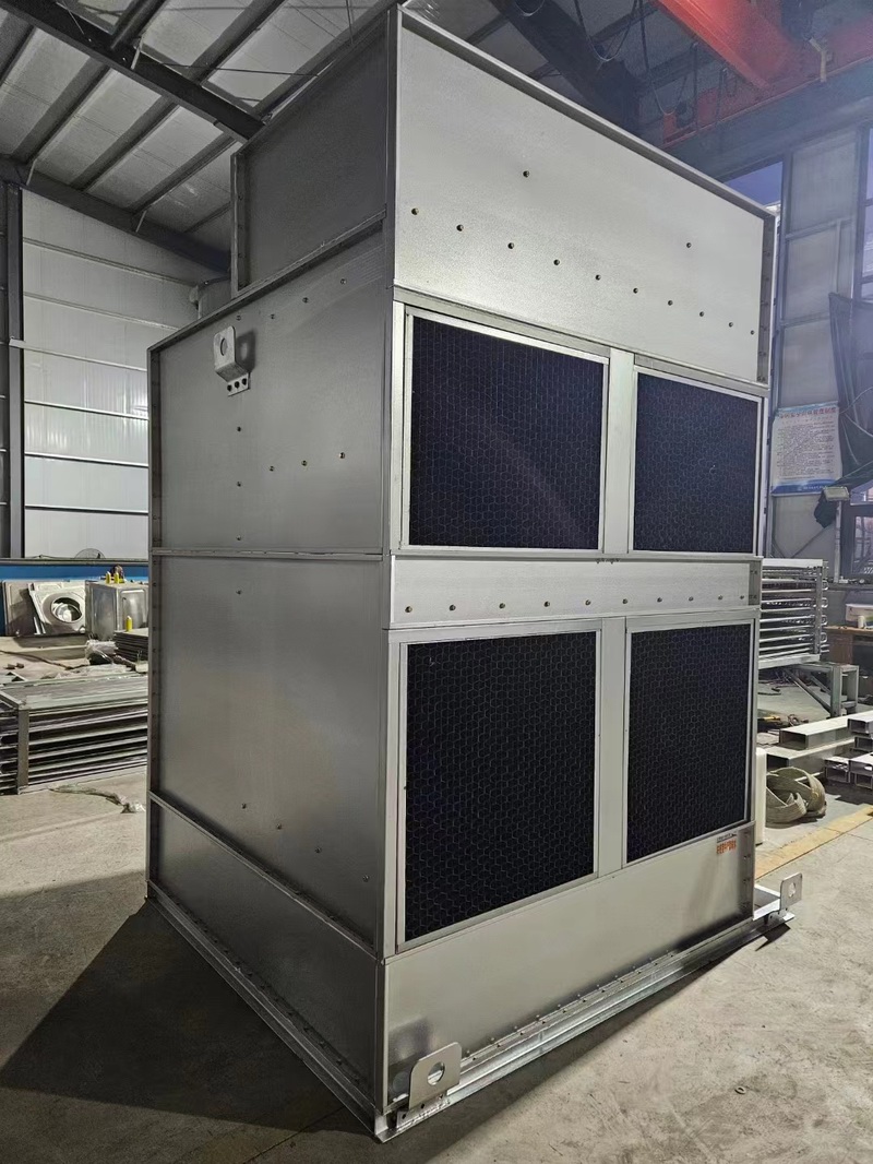 橫流式冷卻塔外接管注意事項:禁止在塔上進行焊接操作,焊接時應在遠離塔體處進行施工,完畢后再與冷卻塔預留出入水法蘭對接。 -